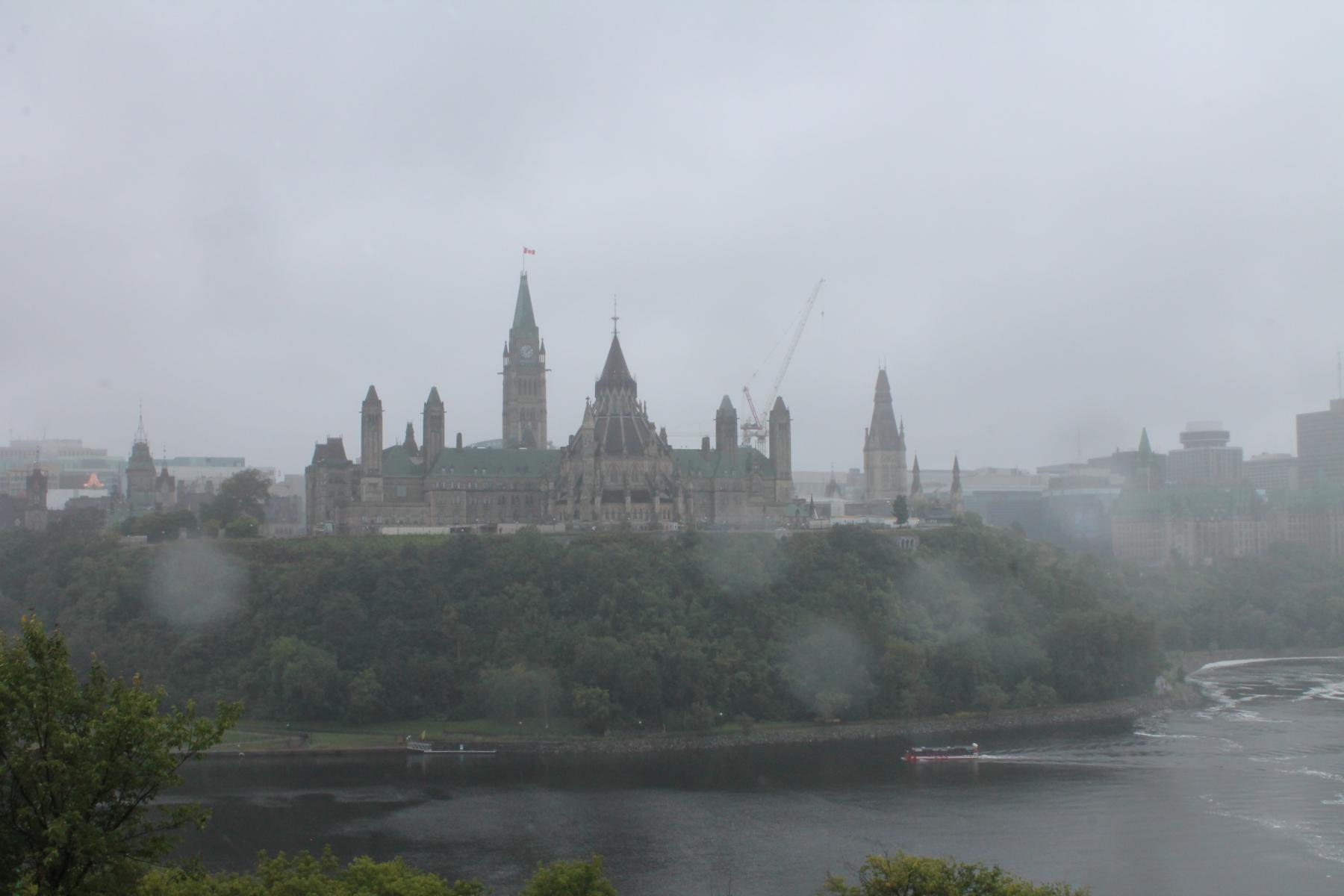 kann hören, wie der Regen rauscht.